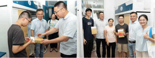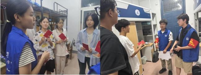 “同学,这是你的‘新生大礼包’,里面有校园指南和新生文创,有事随时找我!”辅导员董毓格一边发放材料,一边与新生和家长交谈,了解他们的实际需求。针对部分新生表现的“开学焦虑”,辅导员们通过轻松幽默的方式缓解紧张情绪,帮助大家建立对大学生活的积极期待。全体辅导员在迎新期间全员在岗、全程陪伴,深入新生寝室开展适应性辅导与成长规划指导。住楼辅导员常态化开展“敲门行动”,叮嘱新生提高防诈骗意识,帮助尽快适应未来的学习生活,真正实现“思政工作进社区,成长关怀到身边”。
